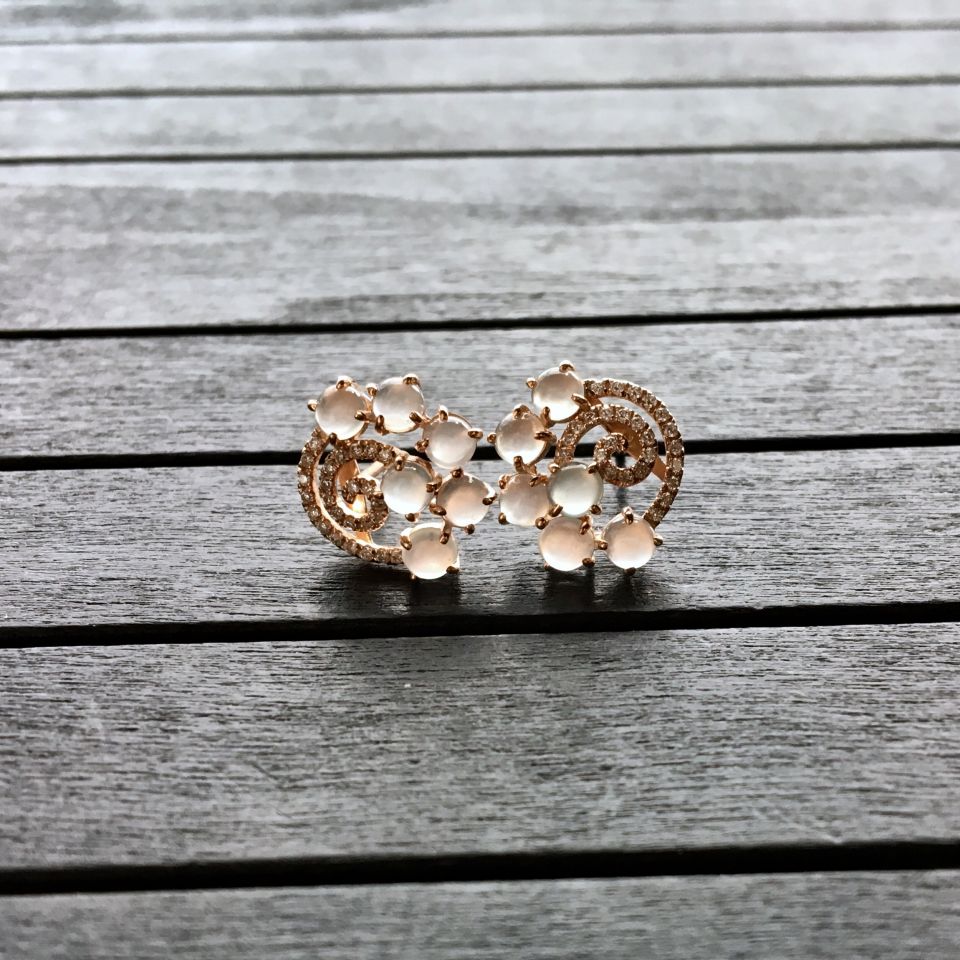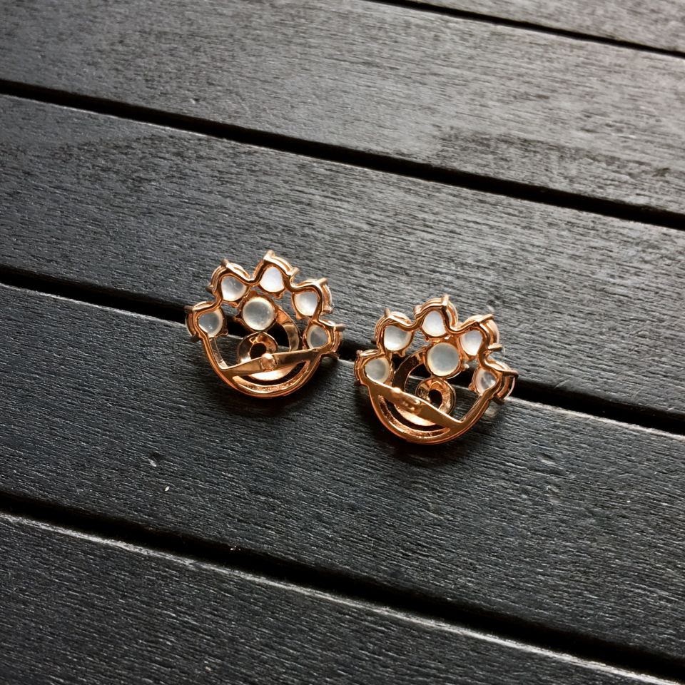 【尺 寸】包金:高12.9mm,宽14.2mm,厚5.6mm,裸石:每颗约:直径3.5mm,厚1.8mm