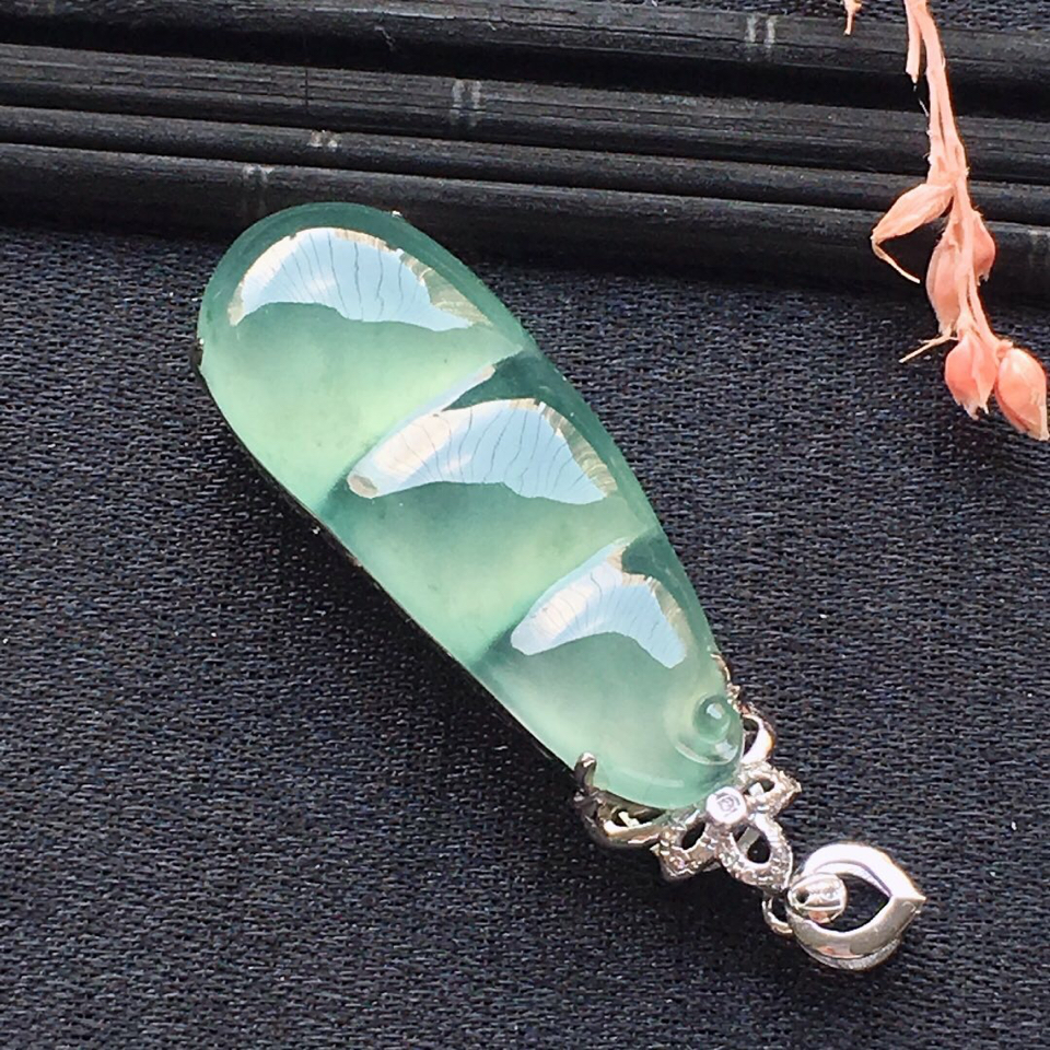 冰种飘花缅甸翡翠逍遥佛挂件