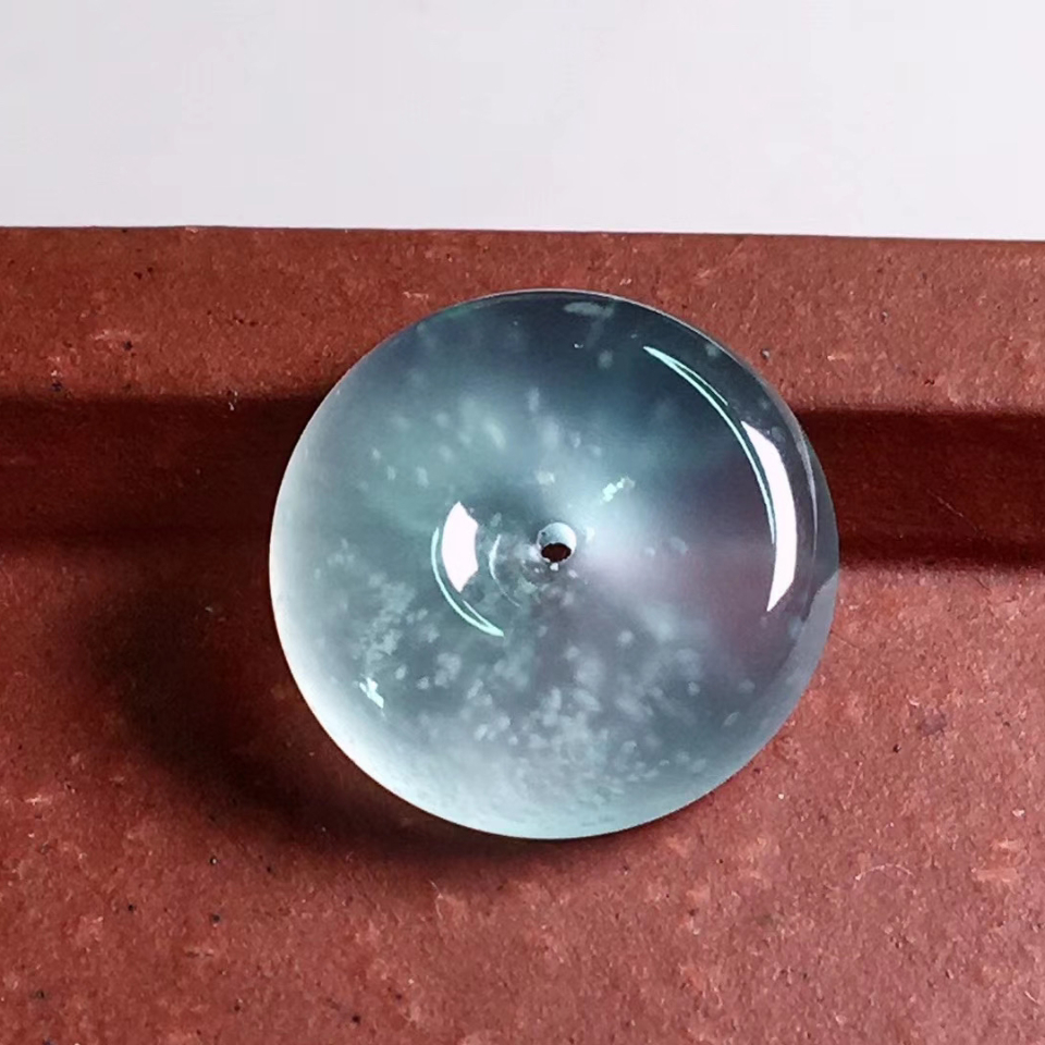 (超值推荐)糯冰种翠色翡翠平安扣挂件(金扣)