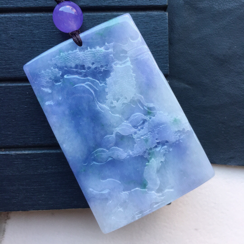 细糯种翠色缅甸翡翠“神龙戏珠”挂件