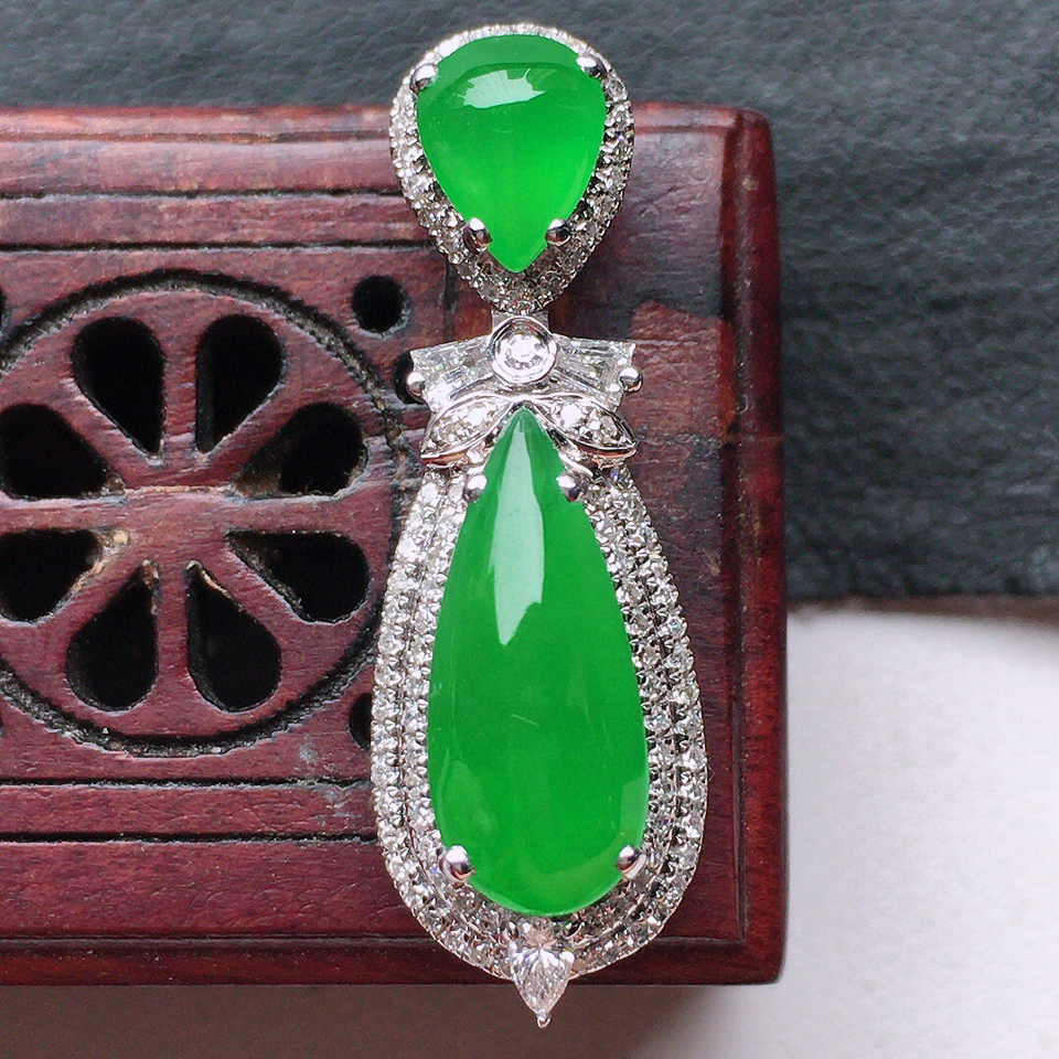 【万千宠爱】冰种正阳绿满绿缅甸翡翠戒指胸坠两用